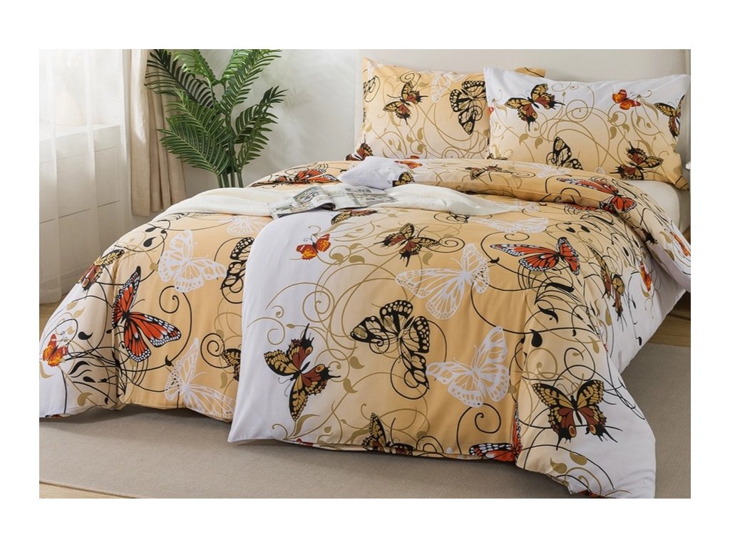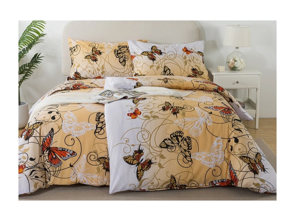 Romantické povlečení s něžným vzorem motýlků nabídne vše, co si jen od povlečení můžete přát. Provedení ze 100% bavlny zaručuje vynikající absorpční schopnosti, díky kterým dobře odvádí tělesnou vlhkost a vyrovnává teplotní rozdíly.